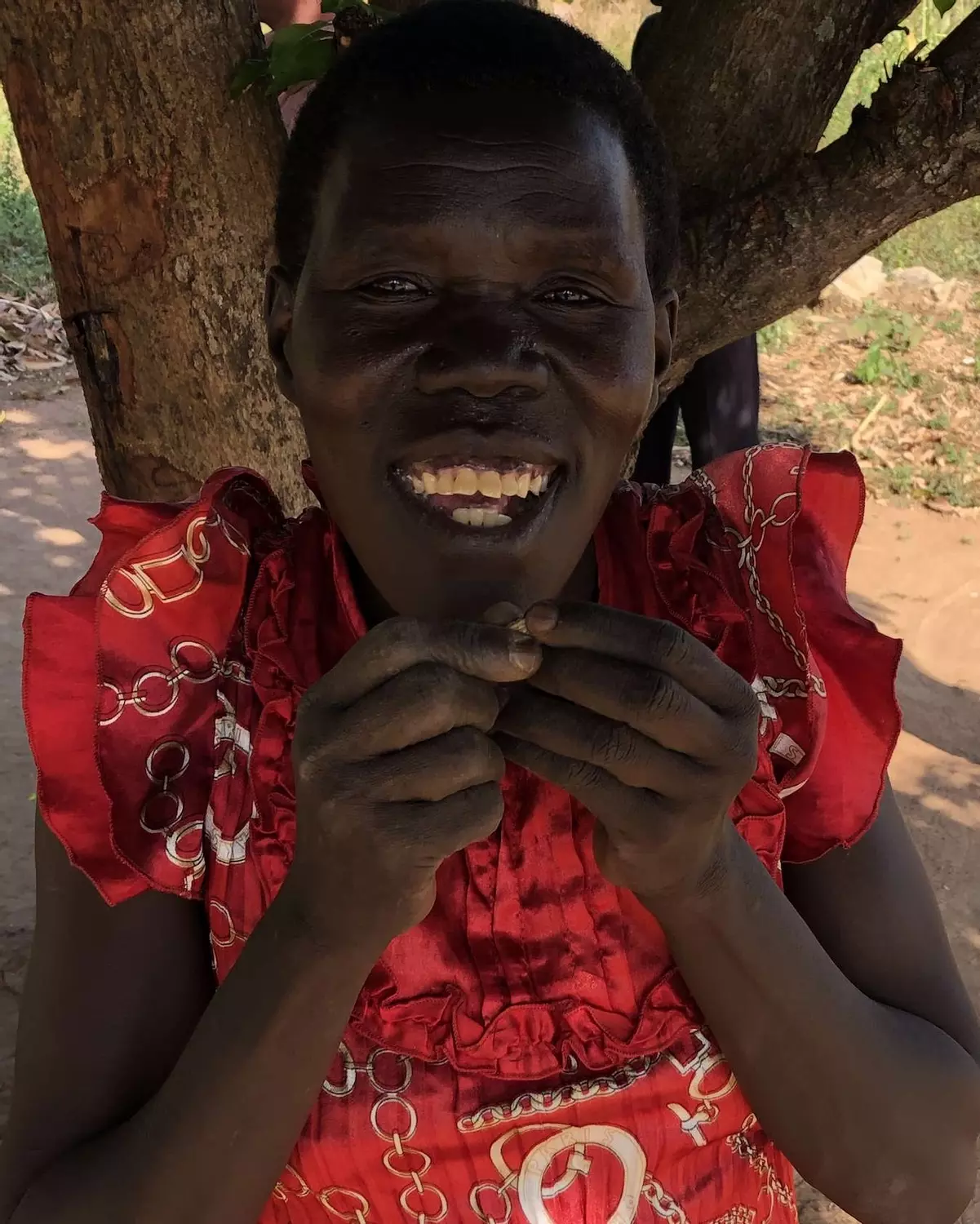 Pictured here, one beneficiary managing her fields & showing/sharing her harvest of G-Nuts.