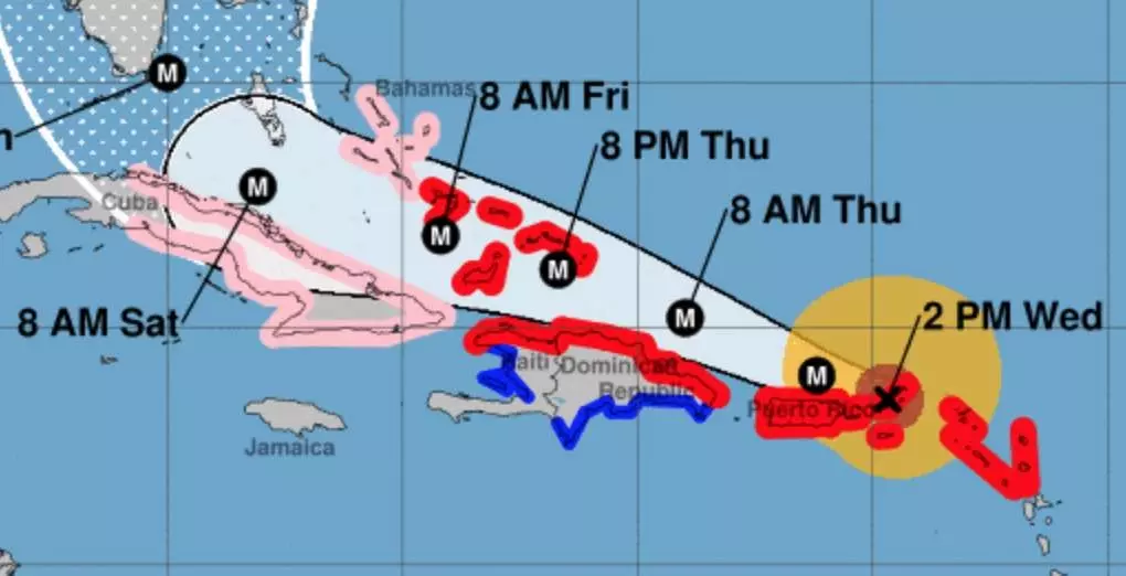 - In Puerto Rico More than half of the island's three million residents were without power as during Irma. Officials have said that power could be cut off for several days. Further reports pending